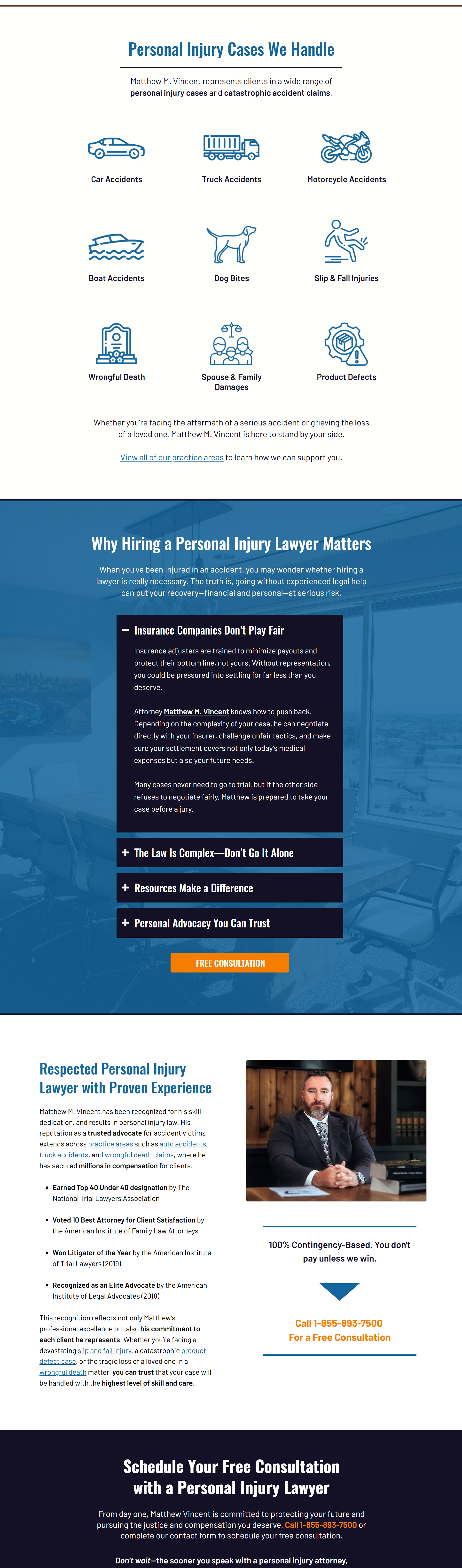 Personal Injury Attorney Matthew M. Vincent wanted a modern website that reflected his 25 years of experience and strong reputation.